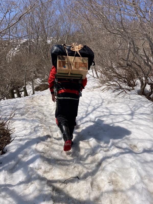 重量のあるものは年に一度、ヘリコプターで荷揚げしています。